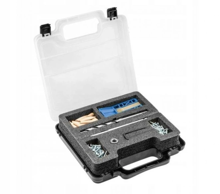 DANE TECHNICZNE: Wymiar brutto (szer. x wys. x dł.): 24,70 x 6,70 x 25,00 cm Waga: 0.87 kg Marka: GRAPHITE PKWiU: 25.73.40.0 Waga netto: 540 g Zestaw zawiera: wkręty do drewna 48 szt. Zestaw zawiera: kołki do drewna 24 szt. Zestaw zawiera: wiertło do drewna Zestaw zawiera: klucz sześciokątny 3 mm Ilość sztuk w zestawie: 76 szt Zestaw do połączeń niewidocznych, 76 elementów 55H250 marki GRAPHITE pozwala na niewidoczne łącznie ze sobą dwóch desek, poprzez wwiercanie się w drewno pod odpowiednim kątem. Zestaw oferowany jest w praktycznej walizce i składa się na 76 indywidualnych elementów: klucz sześciokątny, 48 x wkręty do drewna, 24 x kołki do drewna, wiertło do pracy w drewnie, połączenia narożnikowe (typu ,,T”, czołowe lub ukośne). Polecany do warsztatów stolarskich. **