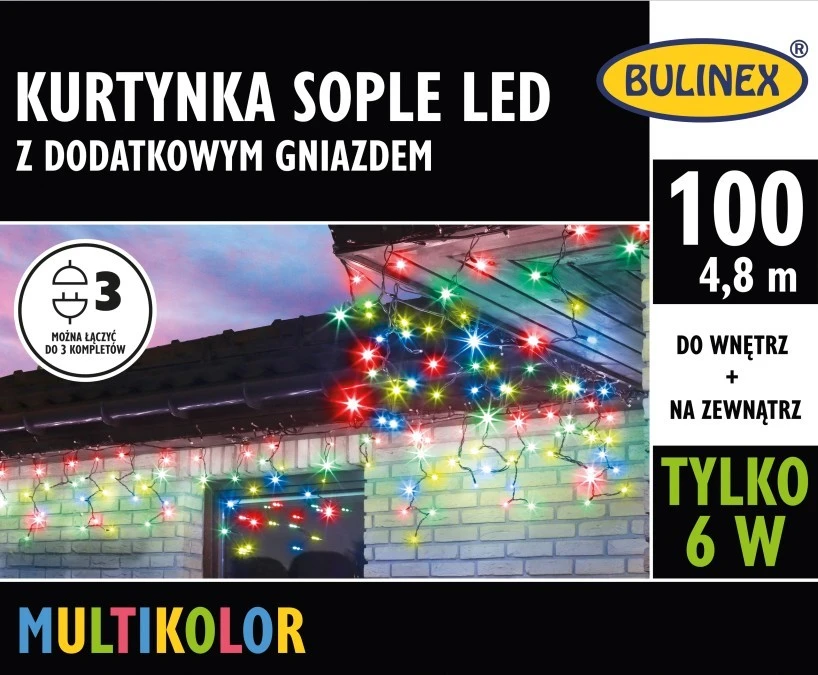 Kurtyna świetlna zewnętrzna 100l kurtyna sople z dod.gniazdem 4,8m dekoracji+5m przewodu zasilającego 13-551
