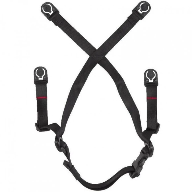 Dwa paski podbródkowe, które można łatwo wymienić i dostosować do warunków pracy. Pasek podbródkowy zgodny z normą EN397 do pracy na ziemi jest oznaczony kolorami czarnym i szarym. Pasek podbródkowy zgodny z normą EN12492 do pracy na wysokości jest oznaczony kolorami czarnym i czerwonym.