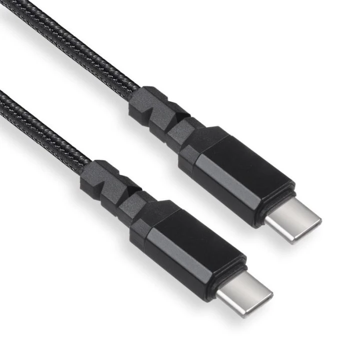 Cechy - Symetryczne wtyczki USB-C - Umożliwia transmisję danych - Solidny oplot zapewnia większą trwałość i elastyczność - Długość: 1 m - Prąd wyjściowy: 3 A - Moc maksymalna: 15 W - Wspiera szybkie ładowanie w standardzie QC 3.0