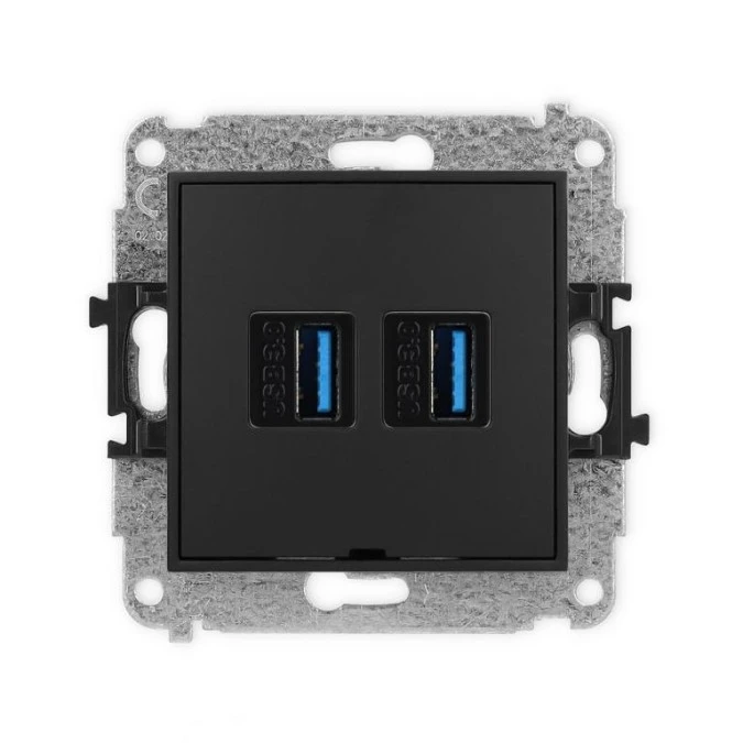 ICON Mechanizm gniazda podwójnego 2xUSB A-A 3.0, bez pola opisowego czarny mat 12IGUSBBO-6