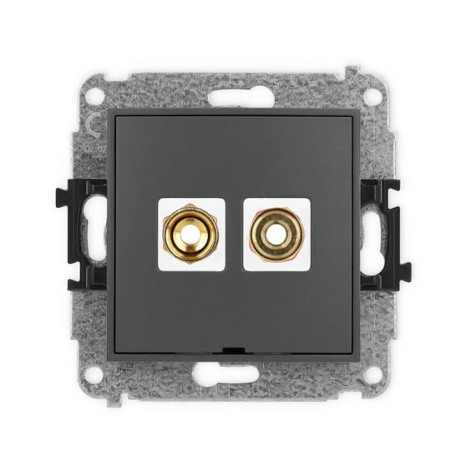 ICON Mechanizm gniazda głośnikowego poj. bez opisu (banan czerwony i czarny, pozłacany, 4 mm2 skręcany) grafitowy mat 28IGGBO-4