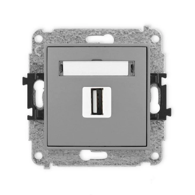 ICON Mechanizm gniazda pojedynczego USB A-A 2.0 szary mat 27IGUSB-1