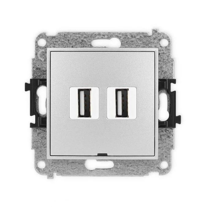 ICON Mechanizm gniazda podwójnego 2xUSB A-A 2.0, bez pola opisowego srebrny metalik 7IGUSBBO-2