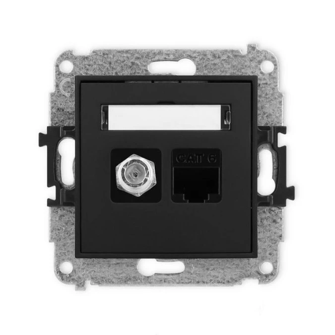 ICON Mechanizm gniazda antenowego poj. typu F (SAT) + gniazda komp. poj. 1xRJ45, kat. 6, 8-stykowy czarny mat 12IGFK-3