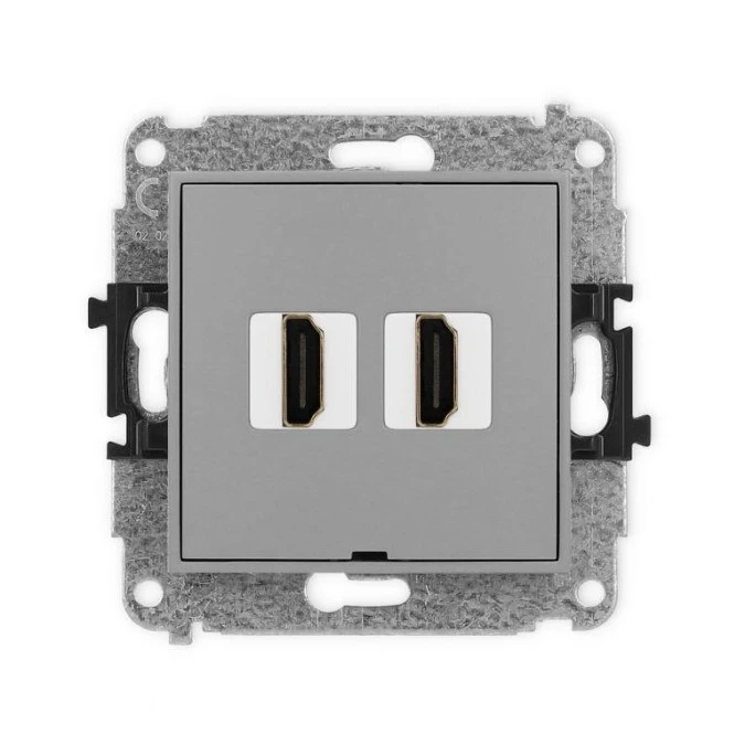 ICON Mechanizm gniazda podwójnego HDMI 2.0, bez pola opisowego szary mat 27IHDMIBO-4