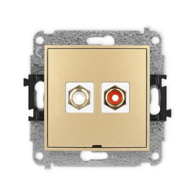ICON Mechanizm gniazda podwójnego RCA, bez pola opisowego (typu cinch - biały i czerwony, pozłacany) złoty 29IGRCABO-2