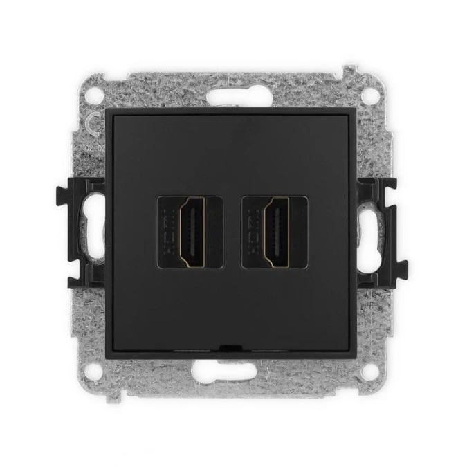 ICON Mechanizm gniazda podwójnego HDMI 2.0, bez pola opisowego czarny mat 12IHDMIBO-4