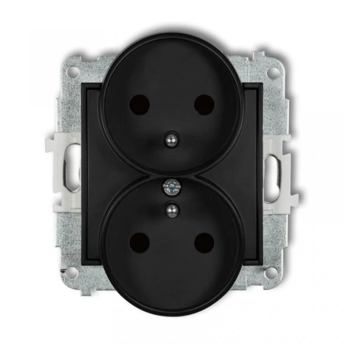 ICON Mechanizm gniazda podwójnego do ramki z uziemieniem 2x(2P+Z) (przesłony torów prądowych) czarny mat 12IGPR-2zp