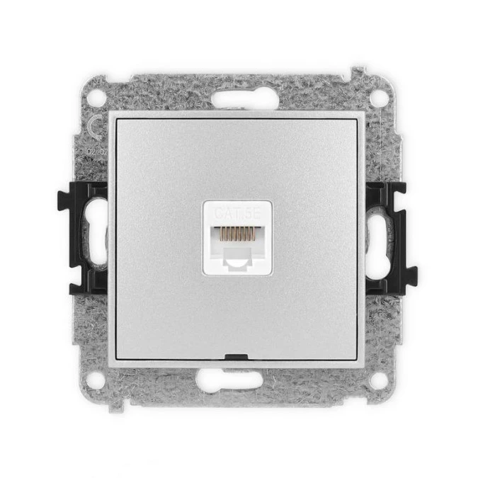 ICON Mechanizm gniazda komputerowego pojedynczego 1xRJ45, kat. 5e, 8-stykowy, bez pola opisowego srebrny metalik 7IGKBO-1