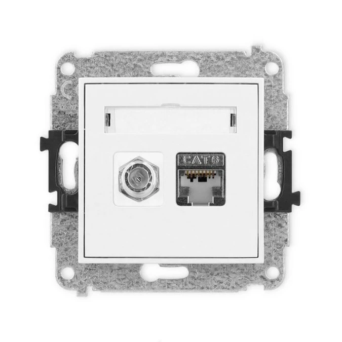 ICON Mechanizm gniazda antenowego poj. typu F (SAT) + gniazda komp. poj. 1xRJ45, kat. 6 ekranowane, 8-stykowy biały mat 25IGFK-5