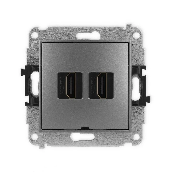 ICON Mechanizm gniazda podwójnego HDMI 2.0, bez pola opisowego grafitowy 11IHDMIBO-4
