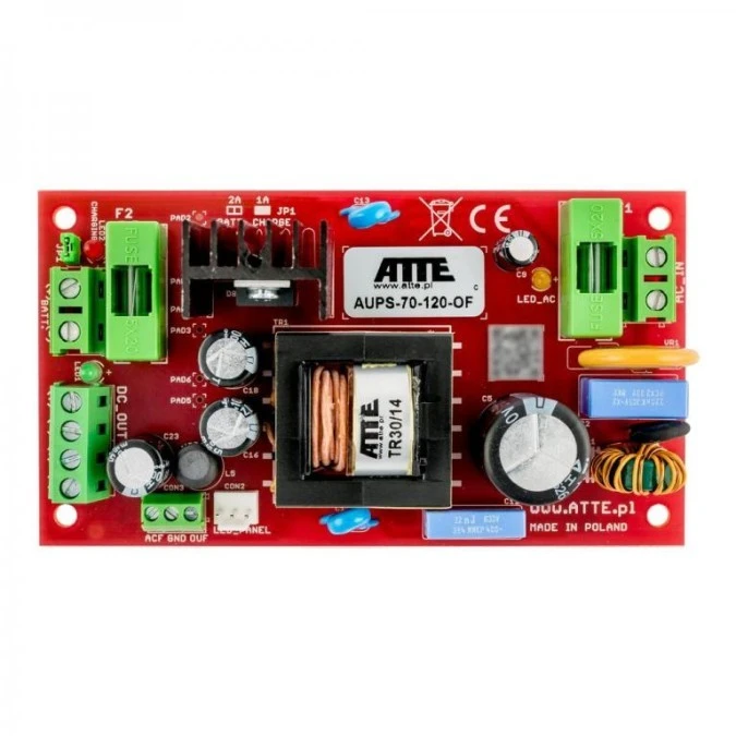 Zasilacz buforowy SMPS, Vin 230VAC, Vout 12VDC, Iout 6A, Pout 72W, moduł do zabudowy, typu AUPS-70-120-OF