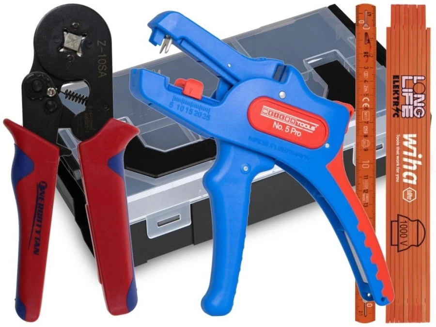 Ściągacz izolacji 0,5-6 mm2 WEICON NR 5 PRO Miara składana dla elektryków 2m WIHA 42068 Zaciskarka Z-10SA 0,25-10mm2 Walizka tworzywowa