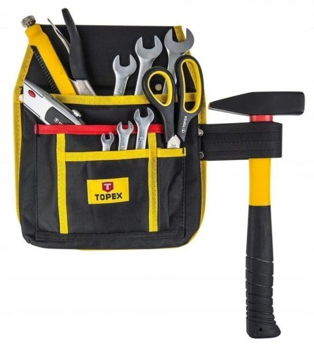 Kieszeń na narzędzia TOPEX wykonana z wytrzymałego tworzywa sztucznego.