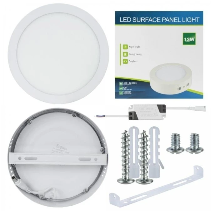 Moc: 12W Napięcie zasilania: 230 VAC Częstotliwość znamionowa f: 50Hz Strumień światła: 850lm Temperatura barwowa: 4000K Materiał obudowy: aluminium CRI: > 80 Ra Kąt świecenia: 120° Stopień szczelności: IP20 Współczynnik mocy: 0,5PF Wymiary Ø×W: 16,1×2,7cm Waga produktu brutto: 0,32kg Zasilacz dedykowany w zestawie