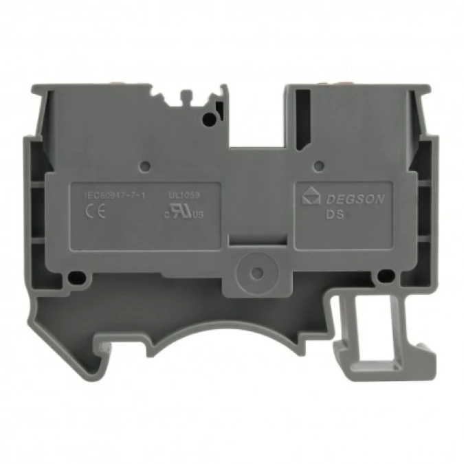 Złączka szynowa 2,5mm2 1P zacisk sprężynowy szara UL⭐⭐⭐⭐⭐Instalacja elektryczna złożona z wielu przewodów musi zapewniać ciągłość przepływu prądu w obwodzie. Złączki przelotowe są montowane na szynie DIN TH/TS 35 i umożliwiają łączenie przewodów oraz ich mostkowanie. Złączki szynowe serii DS2.5 umożliwiają szybkie i wygodne łączenie przewodów o przekroju 0.2 - 2,5mm2 (26 - 12 AWG) przy pomocy zacisków sprężynowych. Obudowy złączek zostały wykonane z wysokojakościowych tworzyw sztucznych PA66 oraz UL94V-0. Wszystkie elementy metalowe w złączce zostały wykonane z powlekanego stopu miedzi. Złączki szynowe DEGSON przeszły wiele testów potwierdzających ich jakość i wytrzymałość. Złączkom został przyznany certyfikat normy UL.➡️ Cechy złączki szynowej DS2.5:✔️ zaciski sprężynowe - prosty i szybki montaż przewodów✔️ montaż na szynie DIN 35✔️ napięcie znamionowe 800 V✔️ prąd znamionowy 24 A✔️ przekrój przewodów 0,2 - 2,5 mm2 (26 - 12 AWG)✔️ certyfikacja UL (nr. E228872)✔️ kolor szary✔️ wysokiej jakości materiał✔️ zaciski ze stopu miedzizastosowaniezłącze zaciskowe na przewody z zaciskiem sprężynowymtyp złączkiszynowailość torów1ilość zacisków2montaż na szynie DIN 35takmontaż elektrycznyzacisk sprężynowywykonaniestop miedziklatka z wysokogatunkowej stalimax. przekrój przewodu2,5mm2napięcie znamionowe800 Vprąd znamionowy24Azasięg drutu26A - 12AWG0.2 - 2.5mm2długość zdejmowania izolacji10-12 mmtemperatura pracyod -40℃ do + 105℃wymiarypodstawowy kolor złączaszarycertyfikat UL 1059nr. E228872deklaracja zgodności CEtakdyrektywa RoHstakakcesoriaOznaczniki na złączki - ZB5-10PPłytka końcowa - D-DS2.5-01PMostek wtykowy - DFB2.5-02PDOSTĘPNE NA NASZYCH AUKCJACHSymbolDS2.5-01P-11-00A(H)EAN5907589333800