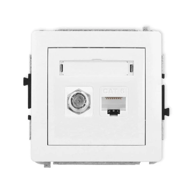 DECO Mechanizm gniazda antenowego poj. typu F (SAT) + gniazda komp. poj. 1xRJ45, kat. 6, 8-stykowy, biały mat 25DGFK-3