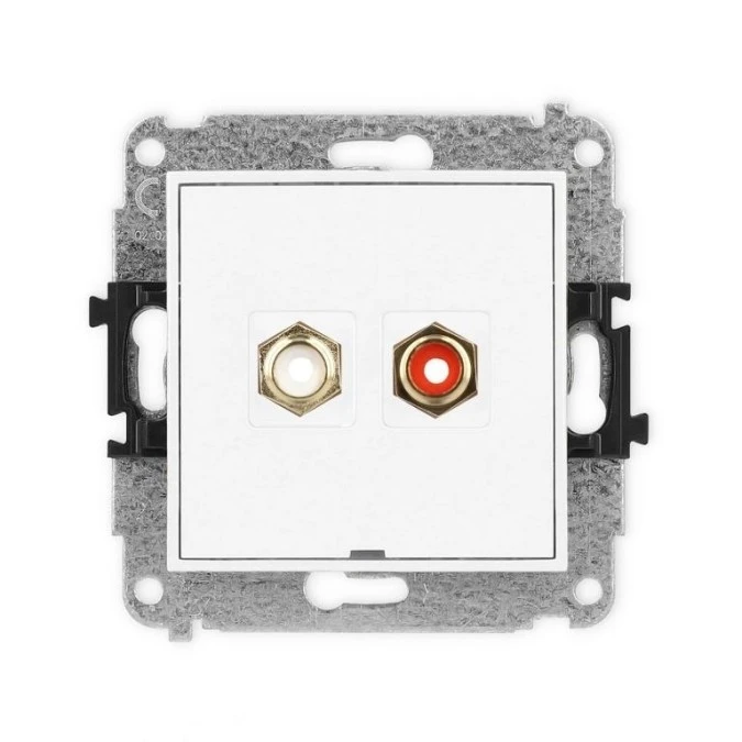 MINI Mechanizm gniazda podwójnego RCA, bez pola opisowego (typu cinch - biały i czerwony, pozłacany) biały mat 25MGRCABO-2