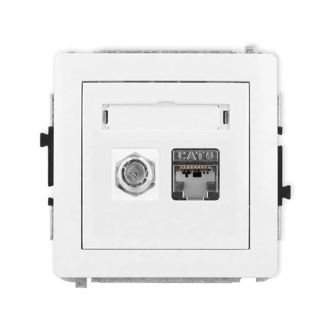 DECO Mechanizm gniazda antenowego poj. typu F (SAT) + gniazda komp. poj. 1xRJ45, kat. 6 ekranowe, 8-stykowy, biały mat 25DGFK-5