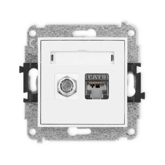 MINI Mechanizm gniazda antenowego poj. typu F (SAT) + gniazda komp. poj. 1xRJ45, kat. 6 ekranowe, 8-stykowy biały mat 25MGFK-5