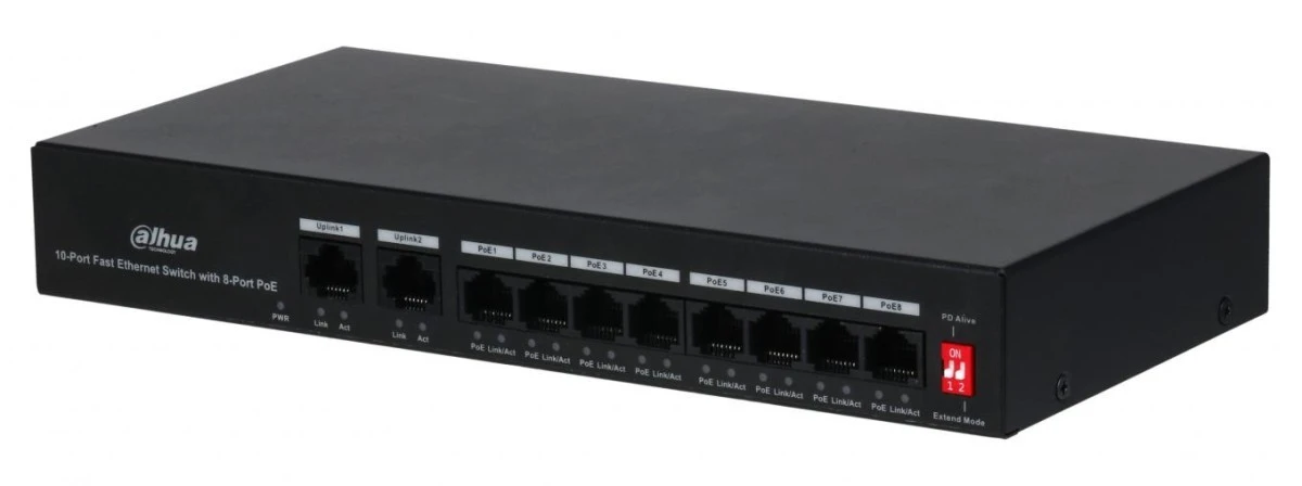 Switch 10-portowy Fast Ethernet, 8xPoE - PFS3010-8ET-65 Dahua