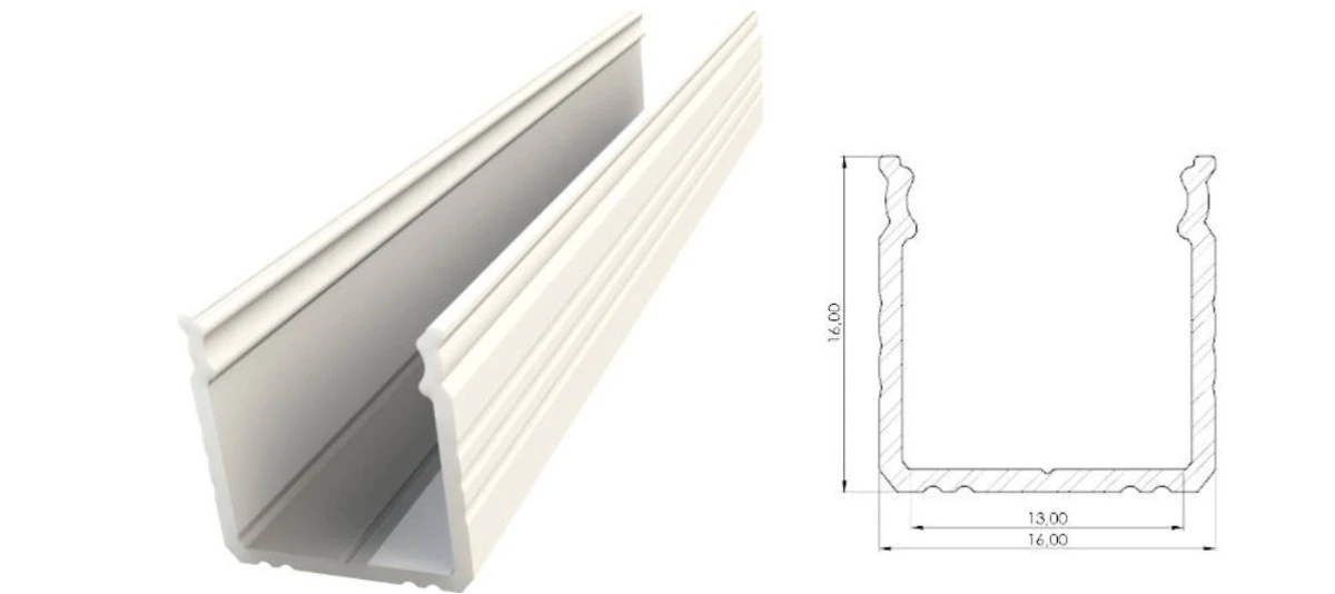 Profil ALU nawierzchniowy 16mm, lakierowany biały, dł 2020mm, max szer. taśmy 12mm