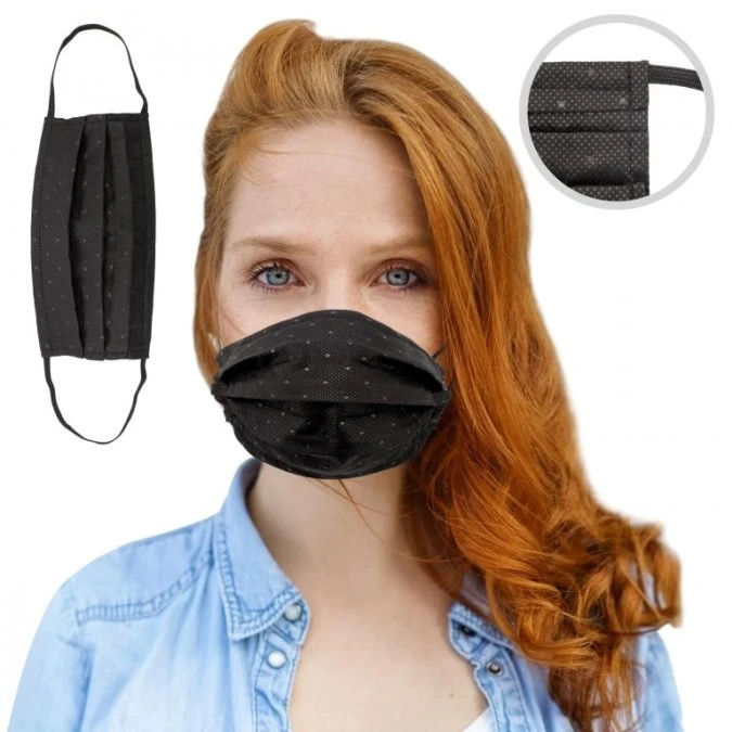 Trójwarstwowa, bawełniana maseczka wielokrotnego użytku , wykonana z wygodnego, oddychającego materiału wysokiej jakości.