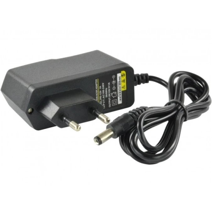 Zasilanie: 100÷240VAC/50Hz Wyjście zasilania: 1,0A/12VDC Sprawność: 80% Przewód z wtykiem : 5.5/2.1 Długość kabla: 1,1m Wtyk prosty