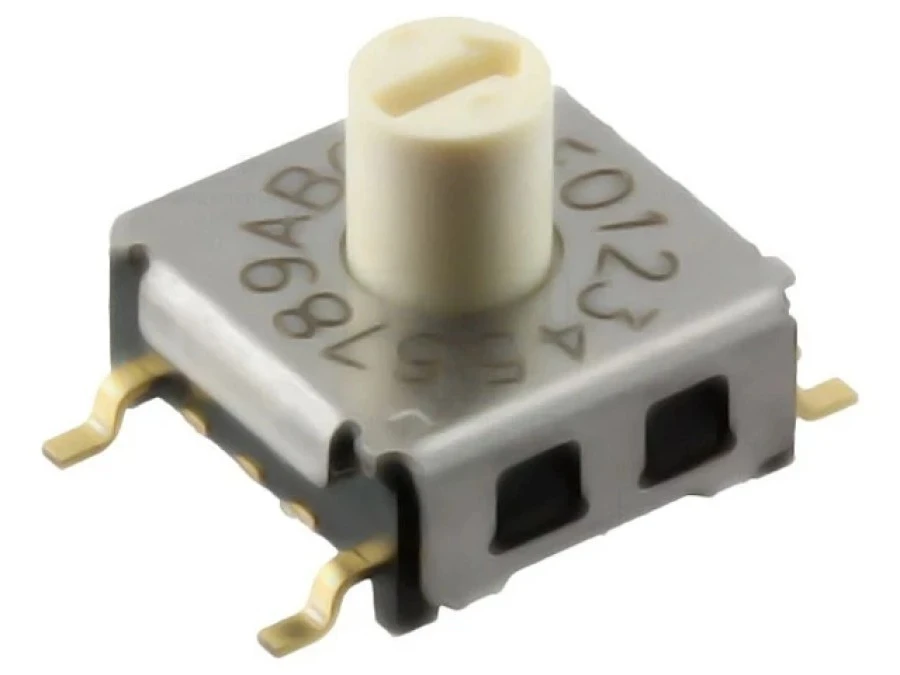 Typ: Zadajnik kodu Ilość pozycji: 16 Montaż: SMT Rodzaj zadajnika: HEX/BCD Temperatura pracy: -30...80°C