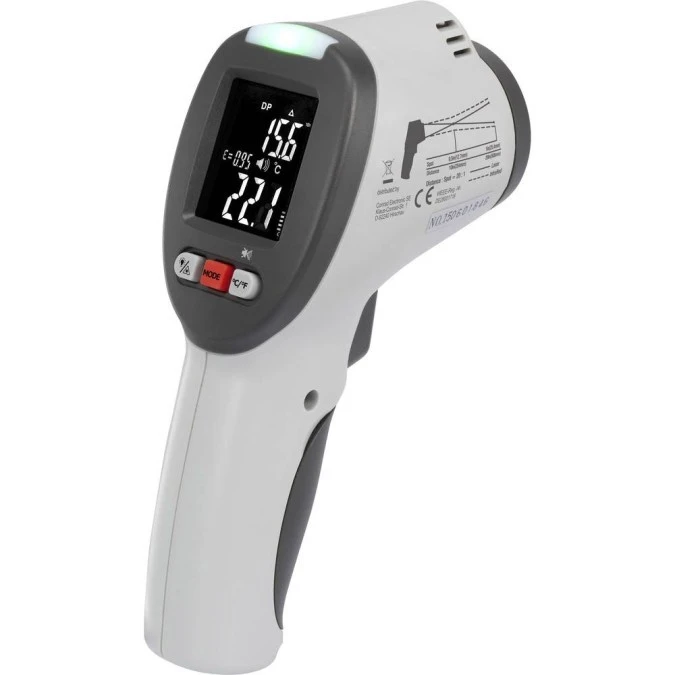 Pirometr VOLTCRAFT IR-SCAN-350RH/2 Optyka 20:1 -50 - +380 °C VOLTCRAFT IR-SCAN-350RH/2 Pirometr Optyka 20:01 Zakres temperatury powierzchni: od -50 +380 °C Optyczny wskaźnik stanu punktu rosy (zielony/żółty/czerwony) Trzy funkcje w jednym urządzeniu Wskazanie temperatury, wilgotności i temperatury punktu rosy Bezdotykowy pomiar temperatury powierzchni i ostrzeżenie przed możliwością powstania pleśni Inteligentna analiza klimatyczna z sygnalizacją świetlną Podwójny wskaźnik laserowy Termometr na podczerwień i miernik punktu rosy Ten praktyczny termometr na podczerwień jest twoim doskonałym pomocnikiem w domu. Urządzenie pozwala na wykrycie miejsc, w których istnieje ryzyko powstawania pleśni. Miernik punktu rosy podczerwieni IR-SCAN-350RH/2 identyfikuje ryzyko powstania pleśni w domu zanim pleśń stanie się widoczna. Wykrywanie punktu rosy Pirometr IR-SCAN-350RH/2 posiada zintegrowany czujnik umożliwiający pomiar wilgotności, dzięki czemu możliwe jest ustalenie temperatury punktu rosy. Jeśli wartość ta zostanie osiągnięta, istnieje niebezpieczeństwo pojawienia się pleśni. Zastosowanie urządzenia jest bardzo proste, poprzez naciśnięcie jednego przycisku. Urządzenie umożliwia również tradycyjny pomiar temperatury i wilgotności powietrza. Oblicza punkt rosy, który służy jako punkt odniesienia dla pomiarów w podczerwieni w strefach potencjalnie zagrożonych powstaniem pleśni. Urządzenie wskaże także, gdzie występują wady izolacji powodujące powstanie plam wilgoci. Pomiar punktu rosy Punkt rosy wskazuje, w których warunkach otoczenia w pomieszczeniu, wilgotność z powietrza skrapla się na powierzchniach. Kondensat ten może być pożywką dla pleśni. Temperatury rosy jest ustalana na podstawie trzech parametrów - zmierzonej temperatury powietrza, wilgotności powietrza i temperatury powierzchniowej. Punkt rosy jest pokazany za pomocą łatwego do odczytani wskaźnika świetlnego (zielony/żółty/czerwony). Bezdotykowy pomiar temperatury na podczerwień Termometr na podczerwień umożliwia bezkontaktowy pomiar temperatury na powierzchniach. Metoda pomiaru bezdotykowy pozwala na zmierzenie wartości temperatury w miejscach niedostępny albo na powierzchniach niebezpiecznych. Dwa punkty laserowe pokazują zmierzoną średnicę stożka, co ułatwia prowadzenie pomiarów. Okienko pomiarowe IR 20:01 Określenie odnosi się do stosunku odległości od rozmiaru plamki. Im większy jest ten wskaźnik, tym bardziej dokładny punkt pomiarowy może być osiągnięty dla danej odległości. Z drugiej strony, z większej odległości można, przy tej samej wielkości plamki, uzyskać mniejszy stosunek proporcji optycznej. Wyposażenie: Odwrotny wyświetlacz cyfrowy (jasny cyfry) · Załączony podwójny wskaźnik laserowy · Wskazanie temperatury, wilgotności i temperatury punktu rosy · Wskaźnik świetlny informujący o zbliżaniu się do punktu rosy · Przełączanie między °C/°F · Podświetlany wyświetlacz · Automatyczne wyłączanie · Stopień emisji 0,95 fix. Dane techniczne: Dalsze dane techniczne: Zakres pomiaru punktu rosy: od -30 do +100°C · Zakres pomiaru wilgotności powietrza: od 0 do 100% RH · Dokładność podstawowa (+/-) °C: 5 °C · Dokładność podstawowa (+/-): 1.5 % · Długość produktu: 168 mm · Kalibracja: Fabryczna (bez certyfikatu) · Maksymalny współczynnik emisyjności: 0.95 · Optyka: 20:1 · Rozdzielczość temperatury: 0.1 °C · Specyfikacja sondy termometru: Termometr bezdotykowy,Wykrywanie punktu rosy · Szerokość produktu: 82 mm · Temperatura maksymalna: +380 °C · Temperatura minimalna: -50 °C · Waga: 163 g · Współczynnik emisyjności: 0.95 · Wysokość produktu: 58 mm · Zasilanie: Bateria 9 V Dostawa obejmuje: Bateria blokowa 9 V · Etui · Instrukcja obsługi.