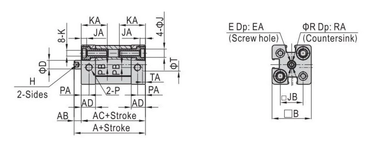 Siłownik Pneumatyczny kompaktowy Flowmatic z jednostronnym tłoczyskiem z amortyzacją mechaniczną ISO21287. Średnica tłoka 12mm skok 25mm D12x25, FNSKI012.0025