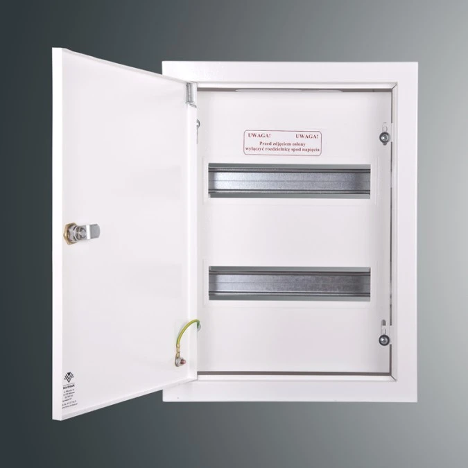 szyny TH 35 - ilość modułów 2x12S zaciski ochronne PE i N przewód ochronny PE do drzwi zamek patentowy - kod 9081 zestaw naklejek obudowa bez tylnej ściany