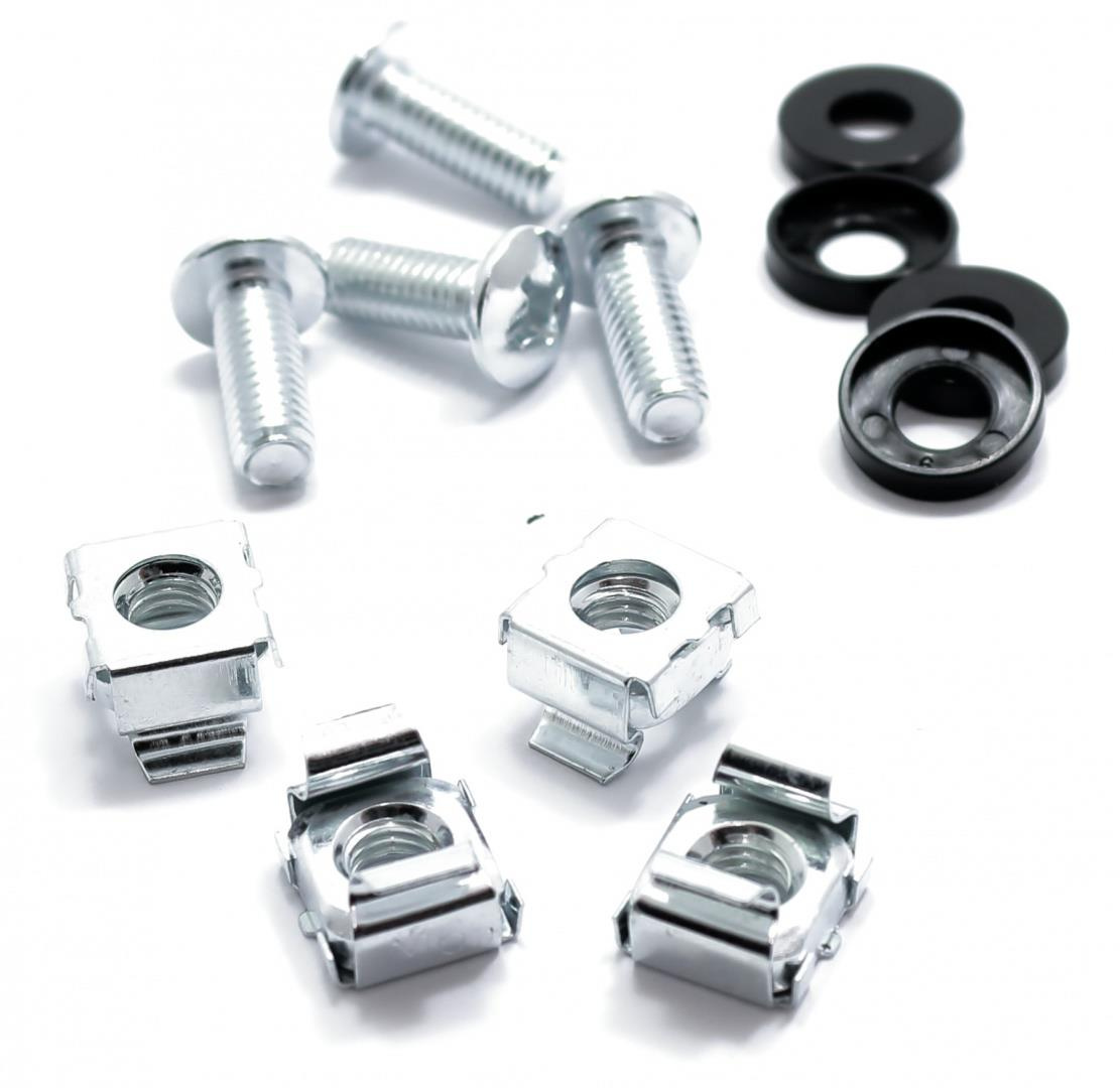 Śruby służą do mocowania wyposażenia do szyn montażowych w szafach. W zestawie:
