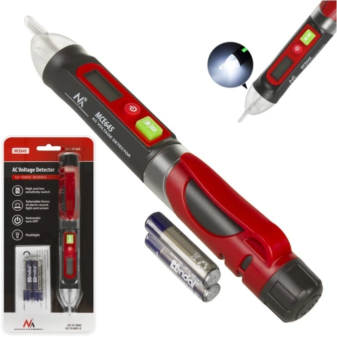 Bezdotykowy wykrywacz napięcia Maclean, detektor, podświetlany wyświetlacz, wbudowana latarka, 12-1000V, MCE645 RSS 44.39 44.39 36.09 + VAT