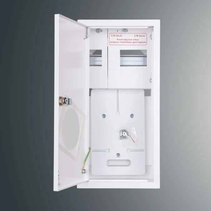 tablica licznikowa 1 fazowa szyny TH 35 - ilość modułów 6S zaciski ochronne PE i N przewód ochronny PE do drzwi zamek patentowy - kod 9081 zestaw naklejek bez okienka obudowa bez tylnej ściany