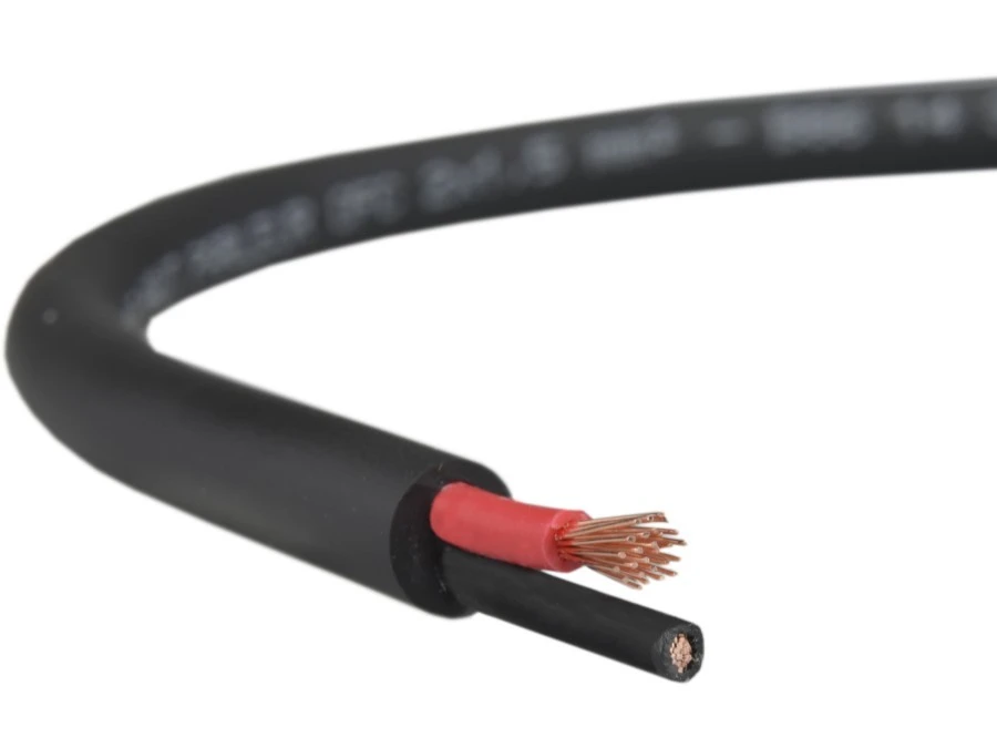 Solidny przewód z wysokiej jakości czystej miedzi Podwójna izolacja przewodnika Wytrzymała czarna izolacja PVC Duża elastyczność przewodu Przekrój przewodu 2x 2.5 mm2 Wiązka 50 x 0,25 mm Geometria: 2 przewodniki skręcone ze sobą w celu eliminacji własnych interferencji Średnica zewnętrzna ok 7,4mm Waga: 87 g/m Zakres temperatury pracy: -25 °C / +70 °C