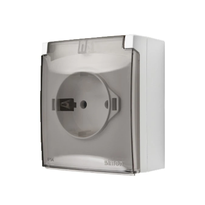 Simon Aquaclick Gniazdo IP44, Schuko, pojedyncze, szybkozłącza klapka transparentna z przesł. torów prądowych biały ACGSZ1CZ/11A
