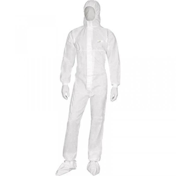 Kombinezon z kapturem z włókniny deltatek 6000 gumka ściągająca w kostkach talii nadgarstkach kol.biały rozmiar M CORP DT221TM