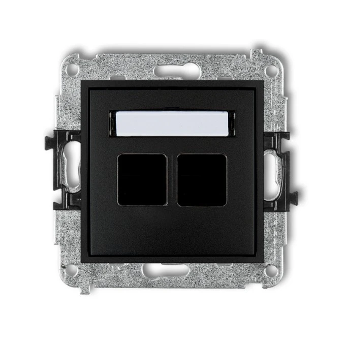 MINI Mechanizm gniazda multimedialnego podwójnego bez modułu (standard Keystone) czarny mat 12MGM-2P