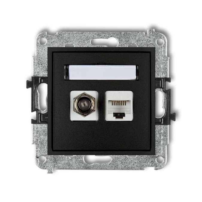 MINI Mechanizm gniazda antenowego poj. typu F (SAT) + gniazda komp. poj. 1xRJ45, kat. 6, 8-stykowy czarny mat 12MGFK-3