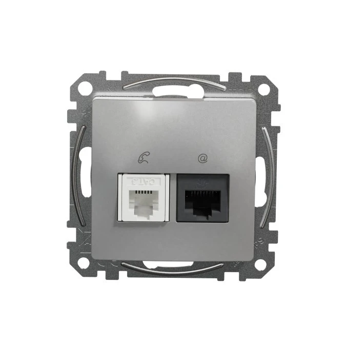 Gniazdo komputerowe-telefoniczne (kat. 5e UTP), srebrne aluminium, Sedna Design i Elements SDD113458