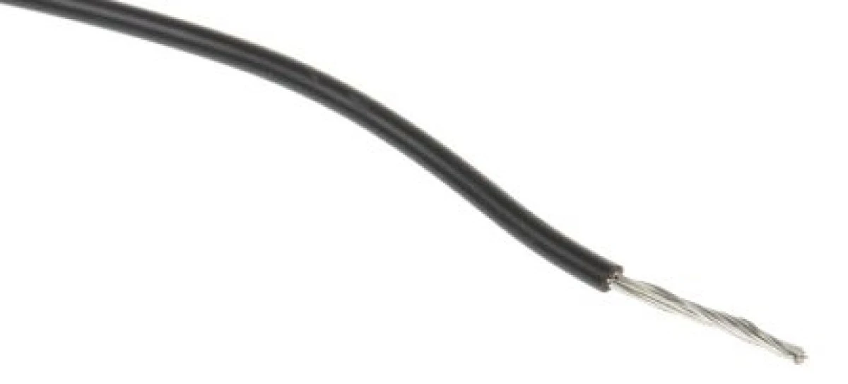 Przewód jednożyłowy linkowy, Przewód instalacyjny, 0,13 mm², 7/0,16 mm, 26 AWG, XLPE, 300 V, Czarny, dł. 100m, RS PRO