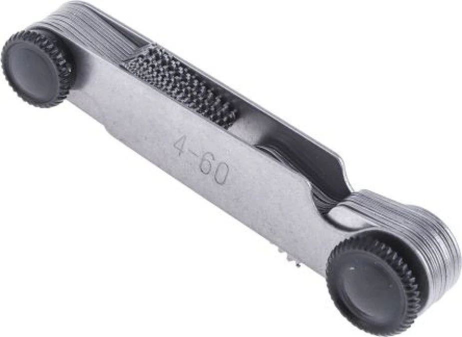 Typ gwintu = Jednostki brytyjskie Liczba łopatek = 27 Największy pomiar w jednostkach brytyjskich = 60TPI Największy pomiar w jednostkach metrycznych = 60mm Najmniejszy pomiar w jednostkach brytyjskich = 4TPI Najmniejszy pomiar w jednostkach metrycznych = 4mm Mierniki z podziałką śrubową. Przymiary do śrub w stylu PENSY Ostrza mielone