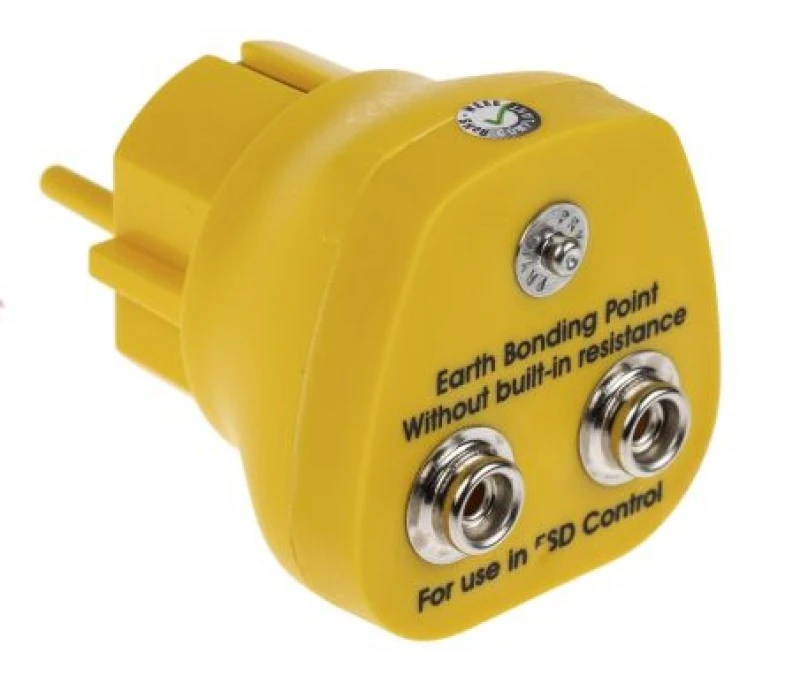 Typ akcesorium = Wtyk połączeniowy uziemienia Typ złącza = Kołek 10 mm i 2 gniazda 4 mm Typ wtyczki = Europejski Zgodność z normą EN 61340-5-1 = Tak Obsługa zgodności programów sterowania ESD S20.20 i EN 61340-5-1. Zatyczki do uziemienia RS Pro - Europa. Wtyki połączeniowe do uziemienia RS Pro pasują do gniazdek CEE (7) VII Schuko w wersji brytyjskiej, francuskiej, niemieckiej, holenderskiej i hiszpańskiej. Dostępne opcje są następujące: ; 2877559 2877559 - wtyk połączenia masowego typu Euro, kołek gwintowany 2 x 10 mm ; 2877543 2877543 - antystatyczna wtyczka uziomowa UE z 10-milimetrowym kołkiem gwintowanym x 2 gniazdo 4 mm Wtyczka uziemienia (EBP) zapewnia wspólny punkt uziemienia dla uziemienia z uziemieniem ochronnym w obszarze chronionym przed wyładowaniami elektrostatycznymi (EPA). Wtyczka pasuje do gniazda zasilania sieciowego, co umożliwia podłączenie tylko przewodu uziemiającego. W miejsce styków pod napięciem i neutralnych znajdują się plastikowe kołki z formowaną izolacją, które umożliwiają dodatnie umiejscowienie w gnieździe. Złącza znajdujące się z przodu wtyczki są dostępne do podłączenia za pomocą przewodów uziemiających do różnych elementów EPA. RS Pro oferuje szeroką gamę akcesoriów uziemiających ESD, w tym wtyczki łączące, skrzynki łączące, uchwyty i przewody oraz wiele innych, które pomagają wyeliminować nagromadzenie wyładowań elektrostatycznych, co może stanowić zagrożenie dla wrażliwych na wyładowania elektrostatyczne komponentów lub urządzeń. Charakterystyka i zalety:. Wtyk z uziemieniem ochronnym z izolowanymi stykami Łatwe podłączenie do uziemienia zasilania operatorów i innych elementów EPA Do stosowania w fabryce i w polu Odlewana z ABS. Typowe zastosowania. Akcesoria uziemiające ESD stanowią część systemu bezpieczeństwa w miejscu pracy, który monitoruje i/lub eliminuje gromadzenie się lub rozładowywanie ładunków elektrostatycznych, które mogą stanowić zagrożenie dla podzespołów elektrycznych, takich jak dyski twarde komputera. Do czego służą akcesoria uziemiające ESD?. Akcesoria uziemiające ESD (wyładowania elektrostatyczne) są elementami w pętlach uziemiających ESD. Akcesoria te są używane w miejscach pracy, gdzie wrażliwe urządzenia elektroniczne muszą być zabezpieczone przed elektrycznością statyczną lub w których istnieje niebezpieczeństwo zapalenia się łatwopalnych cieczy lub gazów. Zabezpieczenie antystatyczne zapewnia uziemienie elektryczne. Akcesoria uziemiające to elementy, które mogą być wymagane jako część całego systemu uziemienia ESD. Często są one używane do łączenia i łączenia mat zabezpieczających przed ESD, monitorów ciągłych ESD, pasków na nadgarstek, osłon na buty ochronne ESD i innych elementów odzieży lub powierzchni bezpiecznych przed ESD.