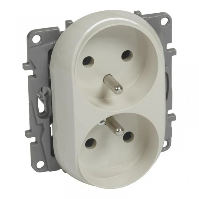 Niloe - Gniazdo 2 x 2P Z do ramek wielokrotnych - bez przesłon, zaciski śrubowe - Kremowe 764662