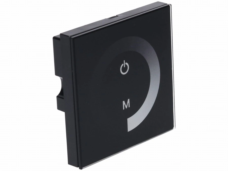 Sterownik do taśm jednokolorowych w formie czarnego szklanego panelu. Łatwy montaż przy użyciu puszki PR-BOX . Umożliwia indywidualną regulację jasności lub wybór zaprogramowanych wartości. Funkcje: - ON/OFF - ściemnianie - 10 zaprogramowanych stopni jasności