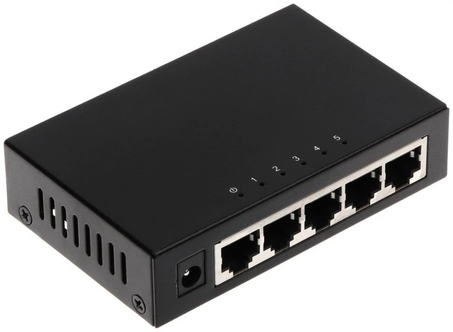 5 portowy przełącznik niezarządzalny warstwy 2. Interfejsy: • 5x port 10/100/1000 Base-T. Wymiary 100 x 64 x 25 mm o wadze 170 g. Zasilanie DC 5 V / 0,6 A. Temperatura pracy 0°C ~ +40°C. Ochrona przed wyładowaniami atmosferycznymi.