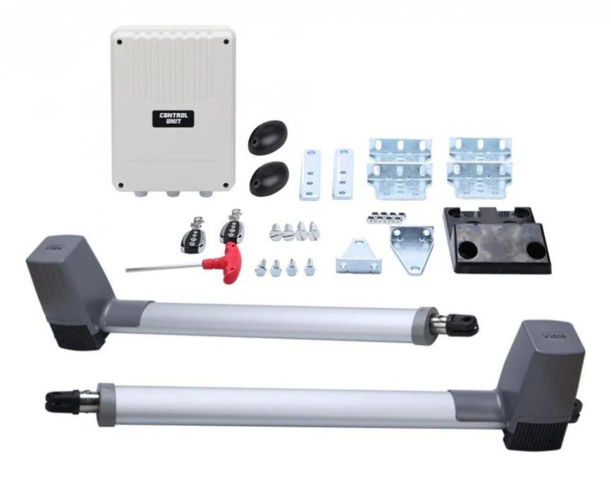 > 2 siłowniki teleskopowe, samoblokujące > Centrala sterującą ze zintegrowanym radioodbiornikiem 433.92MHz w obudowie zewnętrznej > 2 piloty zdalnego sterowania (PL22) > Komplet fotokomórek (para nadajnik + odbiornik) > Akcesoria montażowe wraz z solidnym ogranicznikiem > Klucz rozprzęgania awaryjnego > Karta gwarancyjna zawierająca 2 hologramy z numerem seryjnym