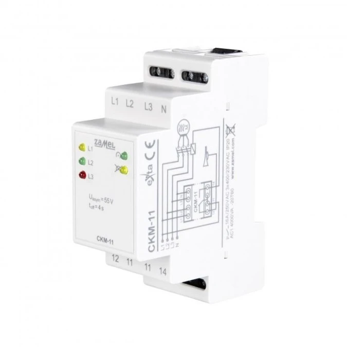 Cyfrowy czujnik kolejności faz i zaniku faz, 16A 2-Mod. CKM-11 EXT10000267